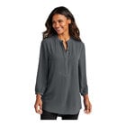 For a unique and stylish look, you'll love this Port Authority LW713 women's 3/4 sleeve textured crepe tunic blouse. Made with 4.5 oz. 100% polyester textured crepe fabric, this tunic offers the perfect blend of comfort and style. Better yet, its longer tunic-length design can be worn with leggings and is great for layering, making it an extremely versatile option.