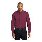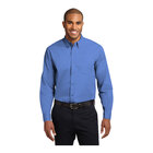 Offering a professional look and comfortable wear, this Port Authority dress shirt is a great choice for any business. This shirt provides a business casual appearance for staff, and it features an attractive black color with a contrasting light stone neckband. A great choice for uniforms, it helps maintain a cohesive look amongst your employees. This dress shirt has a stylish box back pleat and a button-down collar with dyed-to-match buttons for a polished look.