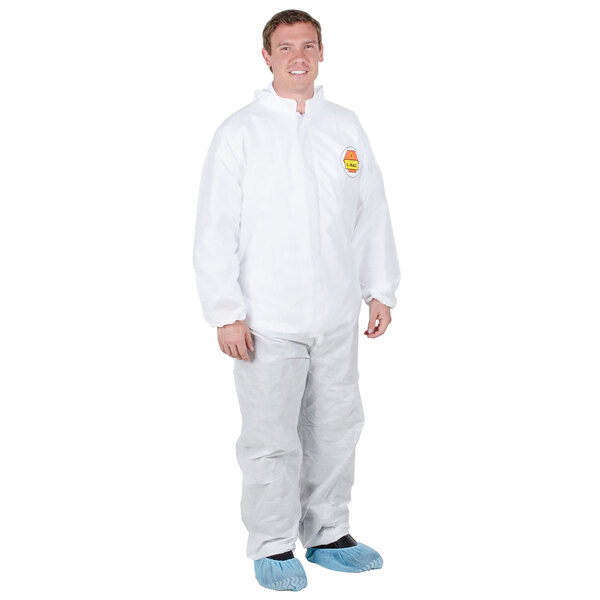 Check out this Lavex White 53 GSM Heavy Weight Microporous Polypropylene Zipper Front Long Sleeve Coveralls with Elastic Wrists and Ankles - L - 25/Case! This item has similar features and a lower price point to make your budget go further. Make the switch now and save!