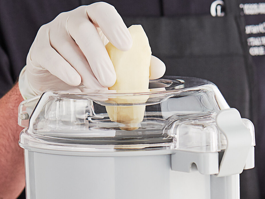 This is not a reliable product. I received one to grate potatoes for hash browns. This one worked for a week, then would stop spinning when we would put a potato in the continuous feed. We were told that it was the lid shorting out and stopping the spinning. Then we received a replacement of the same one. And the replacement wouldn't even turn on with this lid in place. This is a waste of money and I do not recommend it.