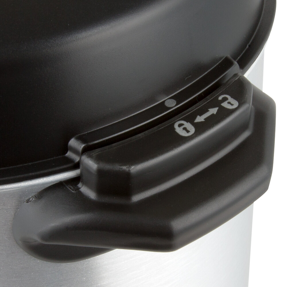 A locking lid helps prevent spills during movement, and cool-touch handles protect hands from burns when the unit is hot.