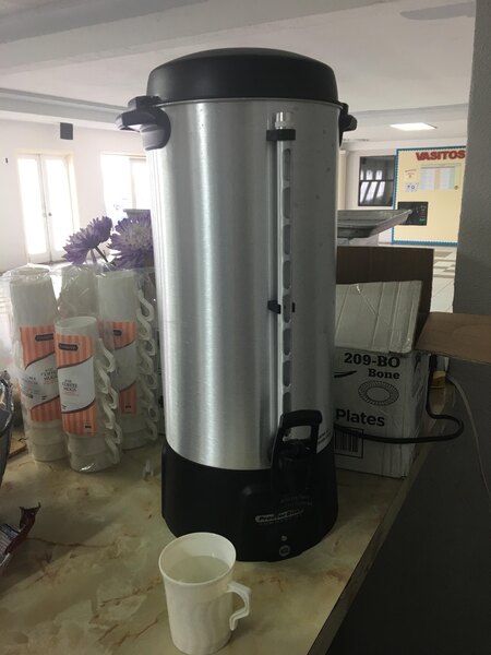 This coffee urn takes a while to fill up, but with a little planning, is worth it. It keeps the coffee hot and is very practical.