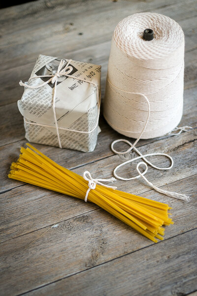 This might be sausage twine, but don't be fooled folks! We use this to bundle newspapers, tie bags of biscotti, and roast chickens. Super heavy duty for a very reasonable price. It doesn't fray like cheap twine but isn't too expensive to break the bank. Won't ever use anything else!