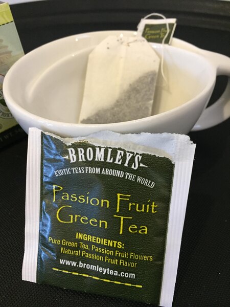 I opted to try Bromley's Exotic Passion Fruit Green tea to offer my guests an alternative flavor besides traditional green tea. The flavor is amazing but not too strong.