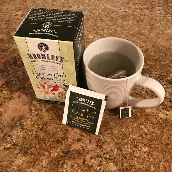 I cut back on my soda and wasn't sure what else to drink besides coffee. The Bromley exotic passion fruit green tea is excellent. It has a great taste and is very reasonable in cost.
