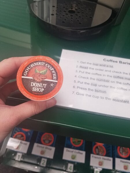 Donut shop coffee flavor in single serve cups that fit in my coffee maker! Total Win! it is actually better than I expected it to be.