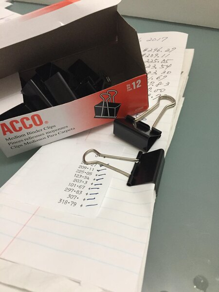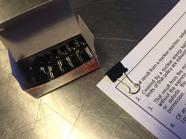 The binder clips work well and are large enough for a large stack of papers. Perfect for when a staple is too permanent, but you need organization!