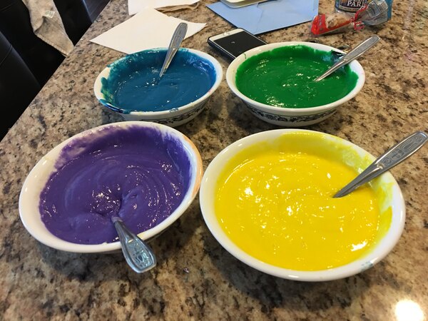 We won't buy any other brand of dye. This food gel dye is amazing. All the colors pop and they blend together well to make colors that aren't included.