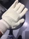 These terry baker gloves work great. Ideal for getting warm pans from oven. Not too hot but warm. These gloves fit most hands. Sits snug on the wrist.