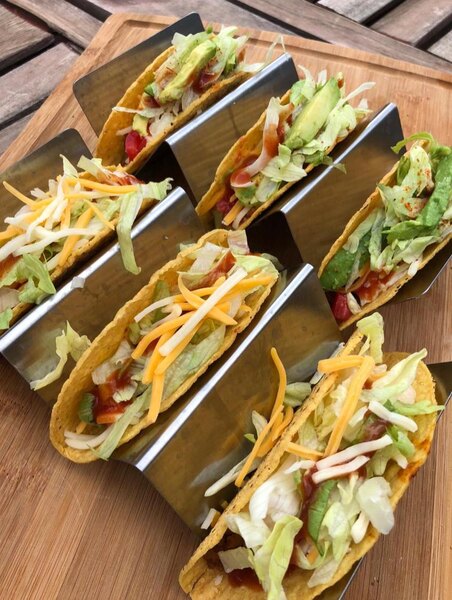 Great Stainless Steel Taco Holder which I can use it for 1 or 2 tacos. Easy to clean and easy to restock them after they are use.