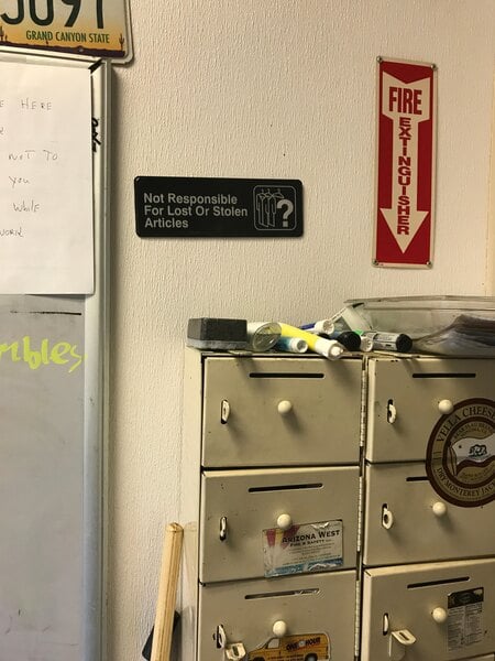 Just so employees are aware that it's not out responsibility to look after their stuff. We keep lockers, but if they are not locked, it's not our problem.
