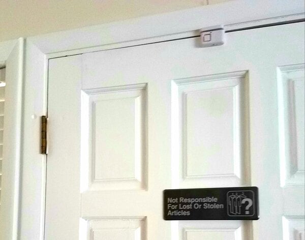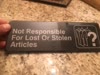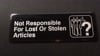 I really like this black and white sign it was very easy to install and it reads not responsible for lost or stolen articles it’s something good to have in the parking lot so people don’t leave their cars unlocked