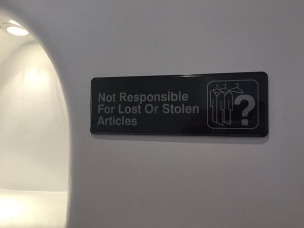 Having this sign displayed on the wall where our customers can see it clearly makes them more conscious of keeping a close eye on their belongings.