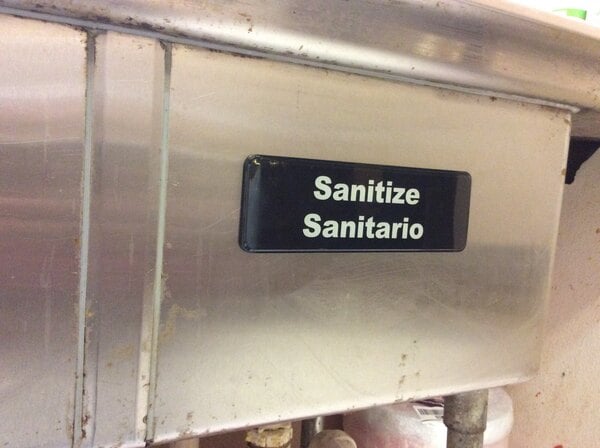 This sign is about what you would expect it to be. It adheres to stainless steel sinks fine, but the stickiness isn't strong enough to hold for a long time. We chose to seal around the edge of the sign to keep water from getting behind the sign and mildewing over time. That helped to hold the sign in place.