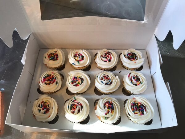 I'm not a huge fan for the Kraft cupcake box. They look great and match our aesthetic, but the oil from the cupcakes and sometimes the frosting marks these boxes up quickly and it is not easy to recover.