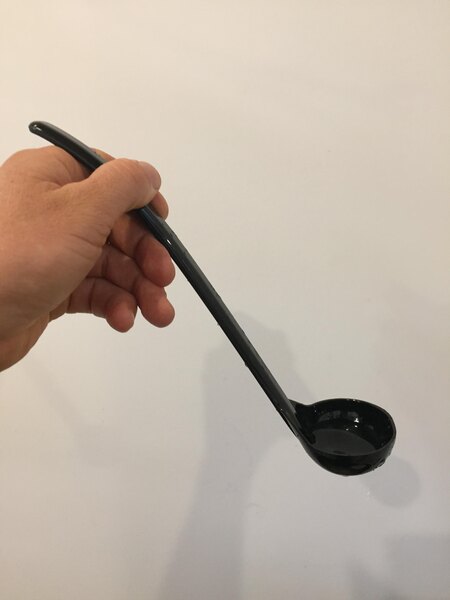 The Carlisle one ounce black serving ladle is well designed and very sturdy. It makes a great ladle for dipping chili out onto our hot dogs.