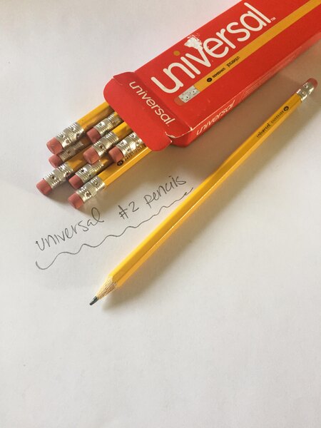 The universal yellow barrel #2 pencil is great. It writes well is easy to sharpen and most importantly, the eraser works well. It doesn't smear stuff around.