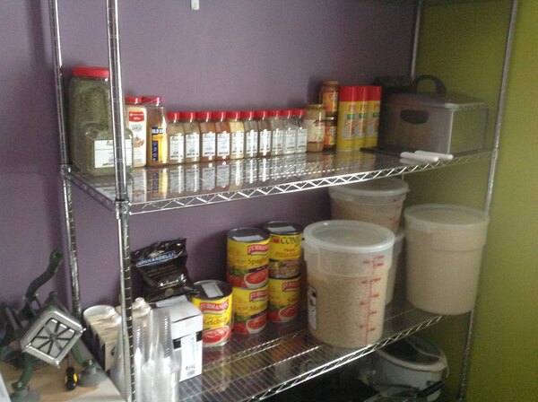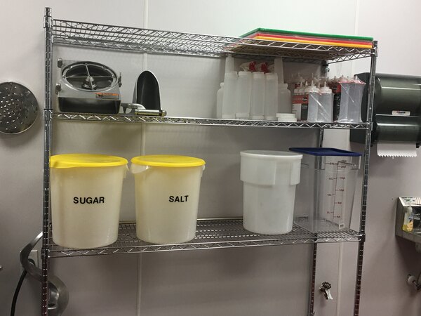 GreT shelving kit for our commissary kitchen. Nice for storing any items such as dry food products, kitchen equipment etc. These shelving units clean up very well.