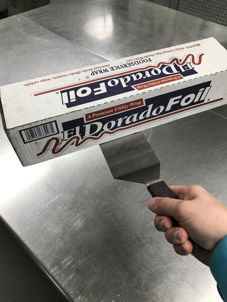 Our mobile unit focuses on smashed burgers. This heavy duty turner is perfect for getting a nice even press on our burgers. The heavy duty design is well built and will last a long time!