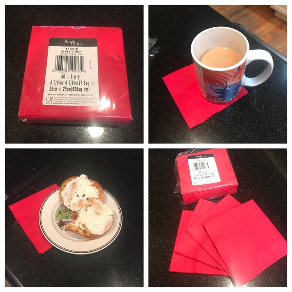 Much like the black napkins, I felt that the color was off by a shade. They were more "off-white" than white. However, they served nicely in my presentation.