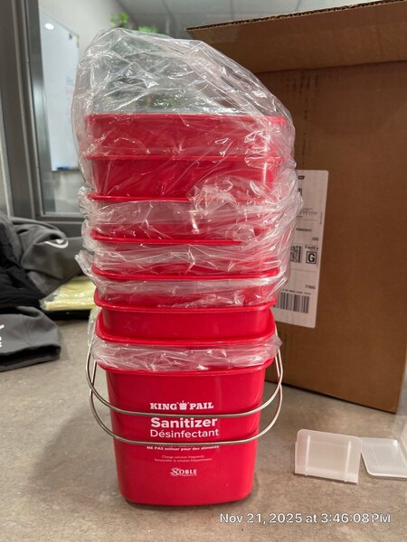 The Noble King-Pail 3 Qt. Red Sanitizing Pail is perfect for keeping sanitizer solution handy in our kitchen. The red color makes it easy to distinguish from other cleaning pails, which helps avoid cross-contamination. It’s lightweight, sturdy, and easy to clean after use. Great quality at a very reasonable price — highly recommend for restaurants and food service operations.