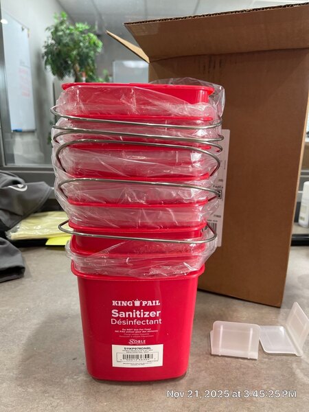 I like these sanitizer buckets. Also, I purchased detergent bucket too. It’s great price and nice quality.