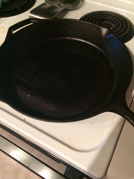 Great cast iron skillet from Lodge. This comes pre seasoned so it's ready to go. Holds up well and is versatile. Can go from stove right into the oven.