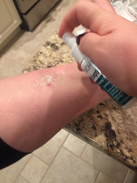 This is a great spray to have handy in the first aid kit it does have alcohol in it so you just have to be careful that and you can't used on little kids because of the alcohol. But besides that it works great!