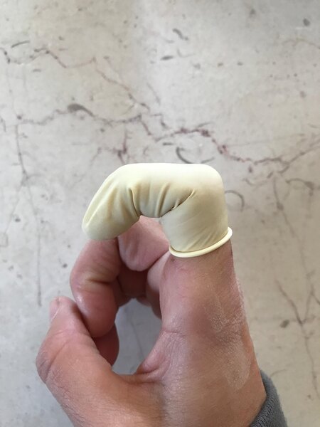 A standard finger cot. Stops stings from acids like lemon juice and hot peppers as well as contamination from bleeding fingers dead in the tracks. Provides a fitted sanitary cover for finger bandages.