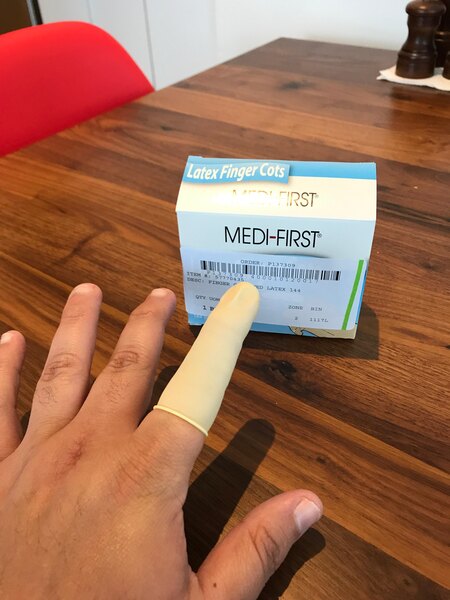 These finger cots are perfect for when you cut your finger, and you need to continue working in the kitchen. They are very easy to use.