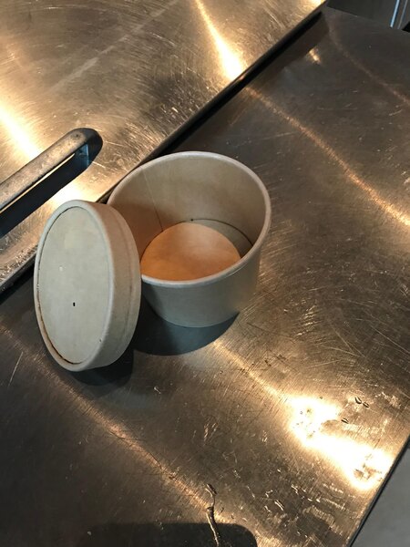 we've just introduced a soup to our menu these little containers are well made to hold hot soup and they work well with our cafe's aesthetic.