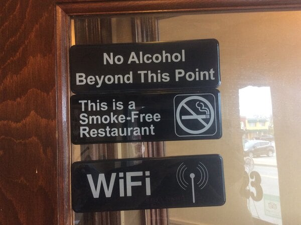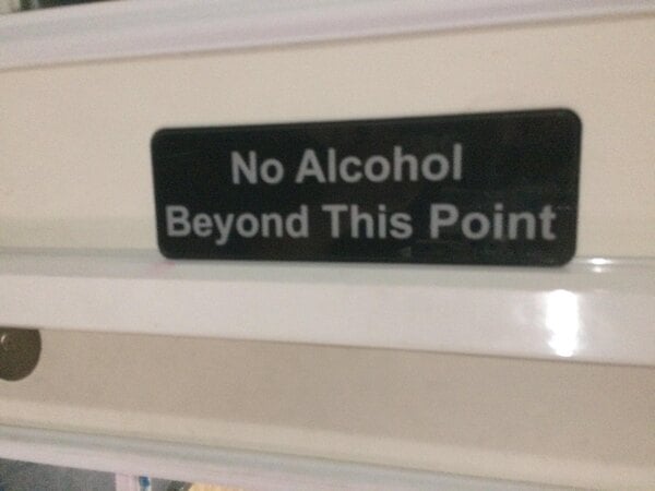 My culinary class uses this sign outside of the class for a state law we are not allowed to use it but to stop any visitor from bringing in any alcohol for cooking. Gets the point across and fits in well. I would recommend this product.