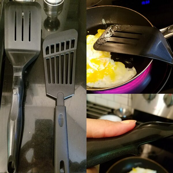 The Vollrath nylon slotted turner is very good quality and super durable. I bought it to use with my non stick pans so they will not get scratched. It does not melt on high heat and works well for flipping food, such as hamburgers. Great buy