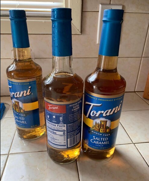 The sugar free salted caramel flavoring syrup is delicious and very bold. A great tasting syrup and can not believe there is no sugar. A great coffee syrup.
