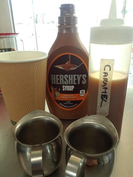 i like the classic hersheys caramel syrup. i decide to try with this fat free caaramel syrup. the taste is similar but i still prefer thr classic