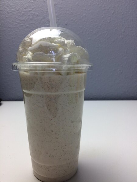 A really nice vanilla bean blended crème mix that is fluffy and sweet. So easy to create and we top ours with whip cream. A great drink to pair with any of our bagels.