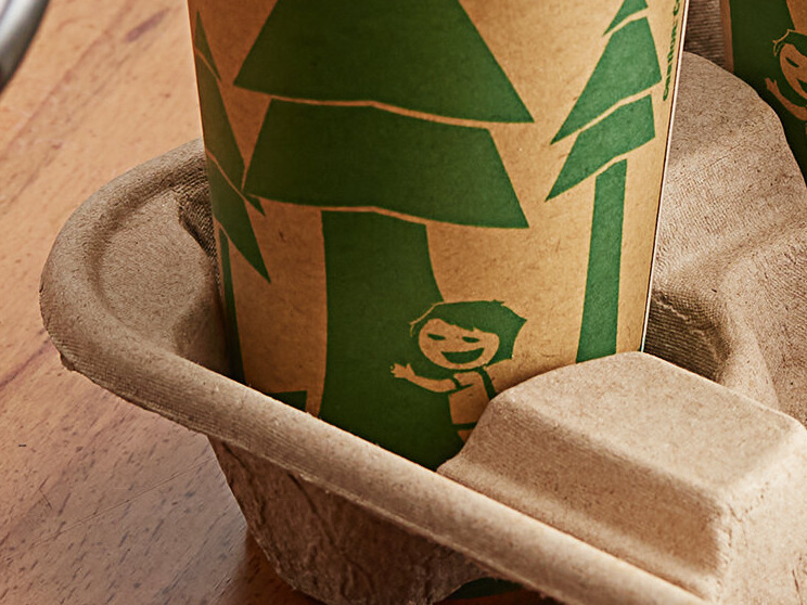 Made of recycled molded pulp fiber, this carrier is an eco-friendly option.