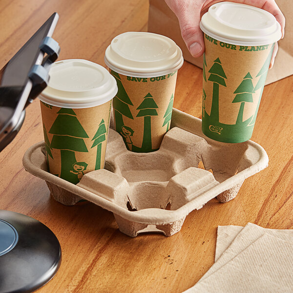 This flat, carton-style carrier cradles the base of your cups to offer support and stability. This design will enable customers and delivery staff to safely transport both hot and cold cups while ensuring that all beverages arrive at their destination without spills and messes.