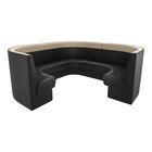 The spacious design is made up of 3 curved corner booths to form a 3/4 circle that accommodates large gatherings while seamlessly complementing other Cascade style booths. The fully upholstered design provides added support and compatibility with different seating configurations, making it easy to expose the back while maintaining a deliberate look. The smooth surface and removable seats make cleaning and maintenance a breeze, while the stitched graphite head roll and ebony seat and back add a touch of sophistication to your decor. The quality craftsmanship of this booth ensures that it is a cost-efficient option that will last for years to come. While the back and base arrive pre-assembled, the separate sections will need to be connected upon delivery.