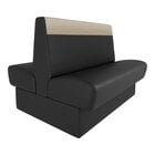 The modular design enables you to combine them in various layouts to accommodate small or large gatherings in any section of your establishment. The fully upholstered design provides added support and compatibility with different seating configurations, making it easy to expose the sides while maintaining a deliberate look. The smooth surface and removable seats make cleaning and maintenance a breeze, while the stitched fawn head roll and ebony seat and back add a touch of sophistication to your decor. Additionally, the booth is flat-packed for space-saving shipping, allowing for quick and efficient delivery compared to fully assembled alternatives. The quality craftsmanship of this booth ensures that it is a cost-efficient option that will last for years to come.