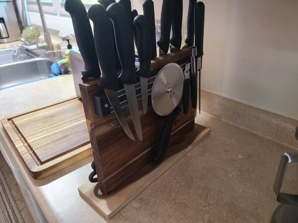 Sturdy. sustainable and capable to hold at least 4 knifes and small spatulas without losing the magnetic