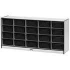 Keep your classroom, daycare center, or early learning facility organized with this Rainbow Accents 4020JCWW003 24 1/2" x 15" x 29 1/2" mobile 20-cubbie blue TRUEdge freckled-gray laminate storage cabinet. Featuring 20 spacious cubbies, this item is perfect for keeping school supplies neatly contained so your floors remain free of dangerous tripping hazards. The cabinet also comes with KYDZSafe rounded edges and kickplates in order to enable safe play and handling. While the rounded edges guard against injuries caused by sharp corners, the convenient kickplates protect fingers and toes from getting pinched. The kickplates prevent toys and other cherished items from falling underneath the unit as well. Plus, the cabinet's 15" depth adds extra stability and storage space to meet your ever-changing needs!