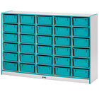Rainbow Accents 4031JCWW004 60" x 15" x 42" Mobile 30-Cubbie Purple TRUEdge Freckled-Gray Laminate Storage Cabinet with Purple Tubs