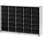 Keep your classroom, daycare center, or early learning facility organized with this Rainbow Accents 4031JCWW004 60" x 15" x 42" mobile 30-cubbie purple TRUEdge freckled-gray laminate storage cabinet with purple tubs. Featuring 30 spacious cubbies with matching purple tubs, this item is perfect for keeping books, small toys, and art materials neatly contained so your floors remain free of dangerous tripping hazards. Use the dishpan-sized tubs to hold and organize items inside each cubbie without fear of damaging or curling their edges, or stack the tubs on the side and use the cabinet on its own for visible storage!