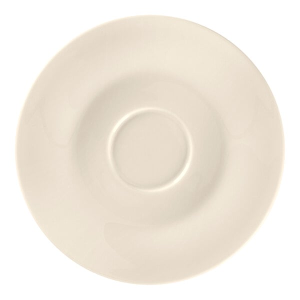 The classic, warm ivory color of this saucer complements your upscale restaurant, fine dining experience, or catering event. When used with the compatible espresso cup, this saucer is perfect for catching excess drips and spills. Elevate your dining experience with the classic and graceful design of the RAK Porcelain Bravura saucer!
