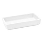 Create dynamic dining presentations with this Front of the House Mod 2.5 oz. bright white rectangular porcelain ramekin. Perfectly proportioned to house a variety of culinary delights, this versatile ramekin is great for doling out condiments, dips, and sauces. No matter your signature cuisine, this product is sure to make your menu items pop, offering a beautiful bright white coloring that will cause your delicious masterpieces to stand out from all the rest! Plus, its rectangular shape and angled sides add a sleek look to your tabletop settings. This combination of modern features makes it ideal for casual restaurants, cafes, or other foodservice establishments that wish to promote heightened creativity through unique serving applications.