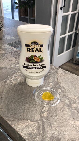 Real passion fruit puree infused syrup is a welcome change of flavor to the same boring cocktail routine. It has a awesome passion fruit flavor and we use it in all kinds of food and drink