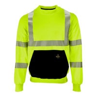Choose a quality product that will prioritize employee safety with this RefrigiWear HiVis orange / black crewneck sweatshirt. This sweatshirt is crafted with a 300 gram polyester sweatshirt outer shell that is warm and durable. It is designed to stand up to heavy-duty work conditions and will not compromise mobility. The crewneck design is easy to pull on and off and is not encumbered by a hood that could obstruct peripheral vision. This sweatshirt is ideal for use in outdoor, warehouse, and industrial work settings.