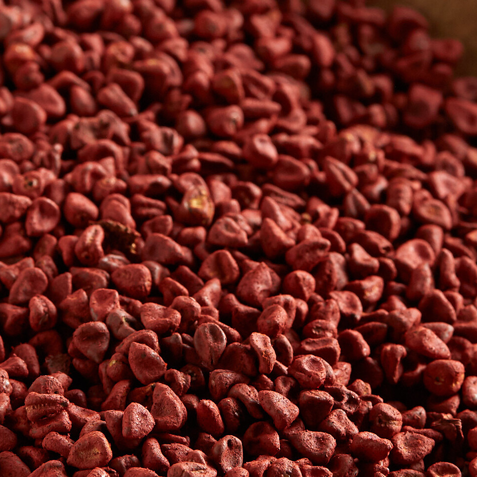 Annatto seed features a brick-red coloring and larger, triangular shape. Though the spice itself is red, it imparts a rich, yellowish-orange color in your foods. Commonly used in Caribbean, Latin American, and Filipino cuisines, it is both a spice and a natural coloring in butter, rice, smoked fish, and cheeses.