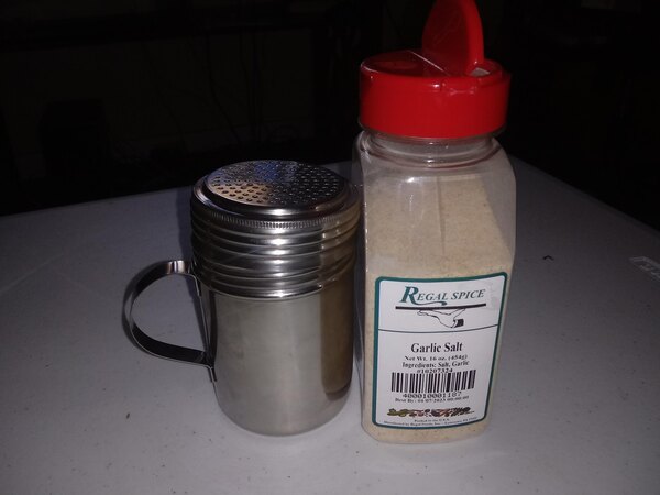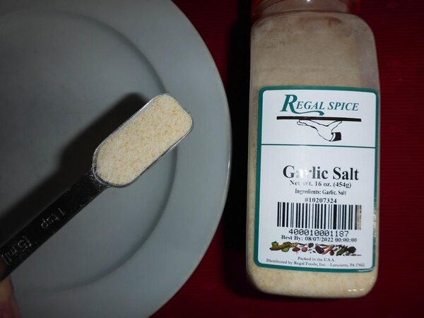 The 5 lb container of regal garlic salt tastes great for use in our many of our food products as well as just for seasoning.